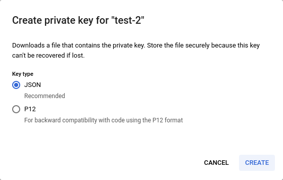 7. 在第 (6) 步中点击“继续”后,您将看到用于创建 JSON 密钥的选项。