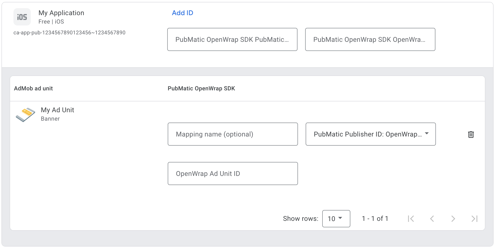 Шаг 2: Настройте параметры PubMatic в пользовательском интерфейсе AdMob.