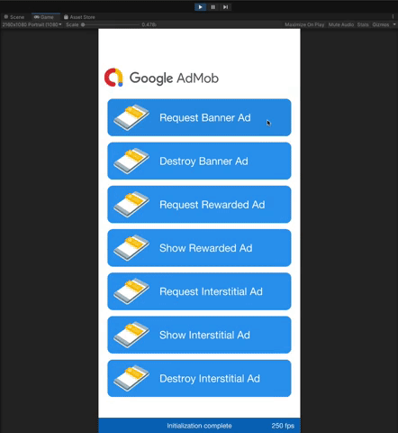 1. Run an app configured with the Google Mobile Ads Unity Plugin and make an ad request using one of the test ad unit IDs listed above. Code listing.