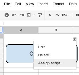 You can also assign an Apps Script function to an image or drawing in Sheets, provided the script is bound to the spreadsheet. The following example shows how to set this up.
