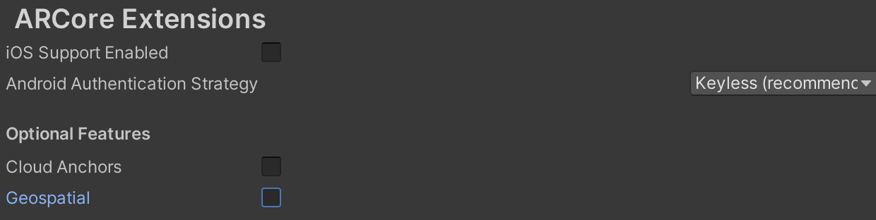 1. Navegue até Edit > Project Settings > XR Plug-in Management > ARCore Extensions.