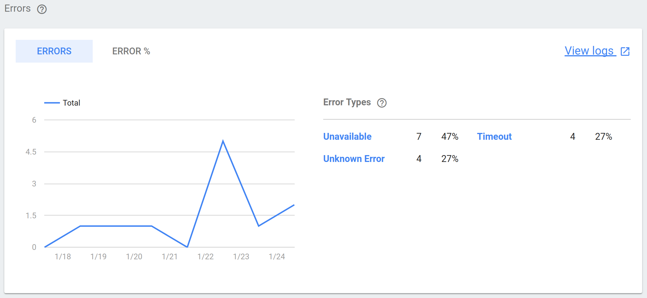 ในกรณีที่โปรเจ็กต์ Actions ล้มเหลวหรือดูเหมือนจะทํางานได้ไม่ดี สาเหตุของปัญหาอาจไม่ชัดเจน คุณสามารถดูบันทึกโดยละเอียดสำหรับโปรเจ็กต์ได้จากคอนโซล Actions ซึ่งจะให้ข้อมูลเชิงลึกเกี่ยวกับสิ่งที่เกิดขึ้นได้มากยิ่งขึ้น