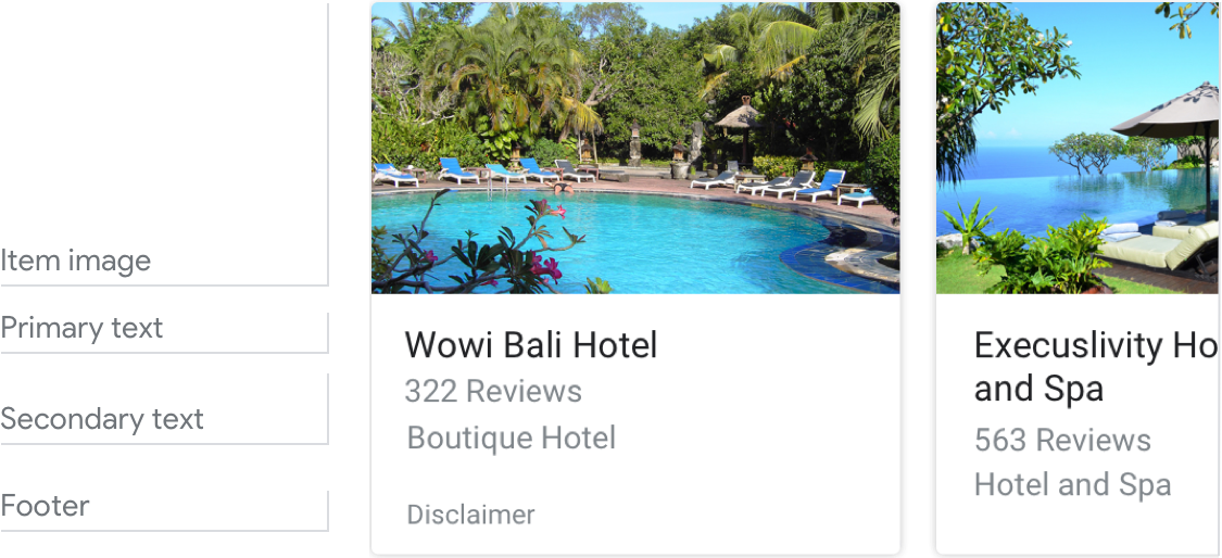 - 스와이프: 캐러셀을 슬라이드하여 여러 카드를 표시합니다.