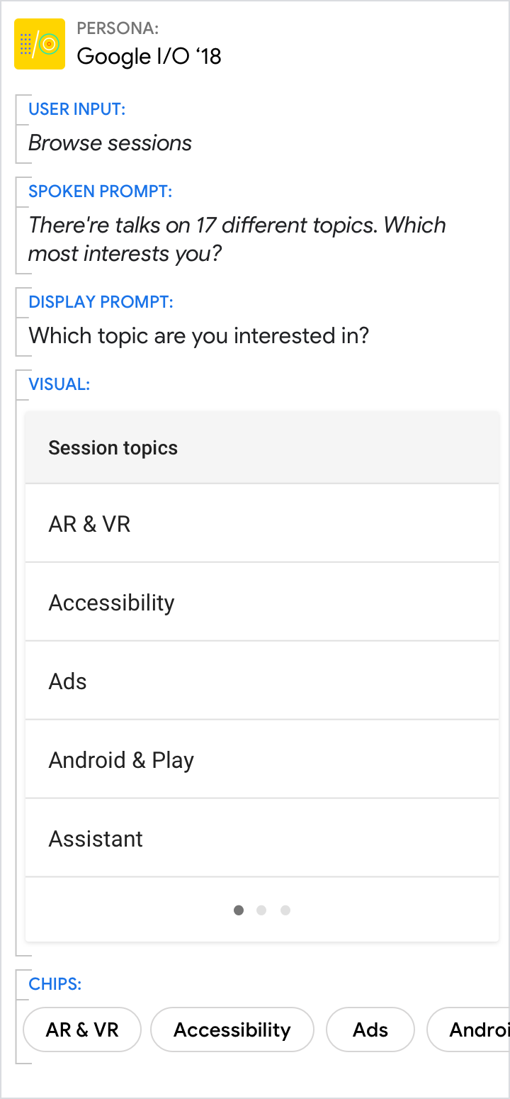 צ'יפים עוזרים למשתמשים: 1) לשפר את הנושאים, 2) לגלות נושאים קשורים, השלבים הבאים, ו-3) לנקוט פעולות. לפעמים משתמשים יכולים להקיש על צ'יפ מהר יותר ובקלות רבה יותר ממה שהם אומרים או מקלידים. כשהמשתמשים מקישים על צ'יפ, הטקסט הזה הופך לחלק מהשיחה כתגובה של המשתמש.