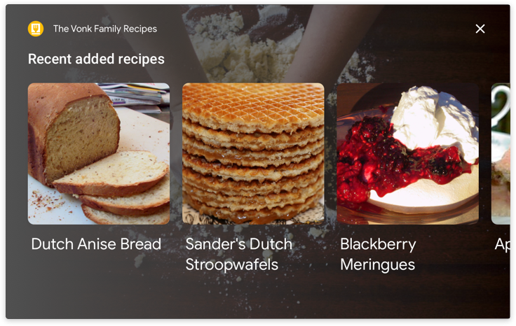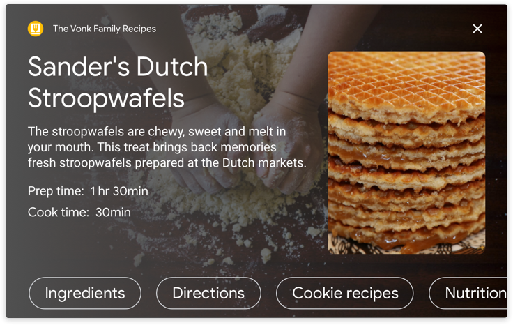 Typografia może przedstawiać Twoją markę, jednocześnie kierując użytkownika na najważniejsze informacje. Aby uzyskać jak największy efekt, możesz dostosować do swoich kart największy tekst, np. tytuł, na każdej karcie akcji. W takim przypadku bardziej wyrazista czcionka, np. szeryfowa, czcionka czy cięższa czcionka, przyciąga uwagę i kontrastuje tekst dodatkowy. Ogólne wskazówki dotyczące typografii można znaleźć na stronie Material Design Foundation.