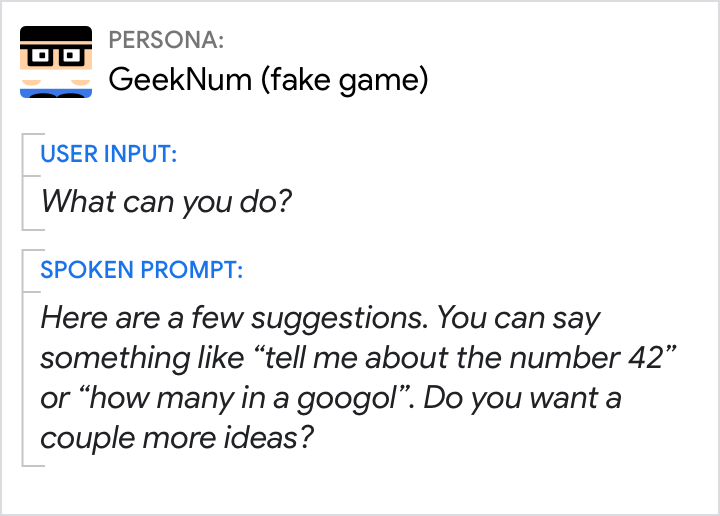 Nie podawaj instrukcji, takich jak „powiedz na przykład porę dnia”.