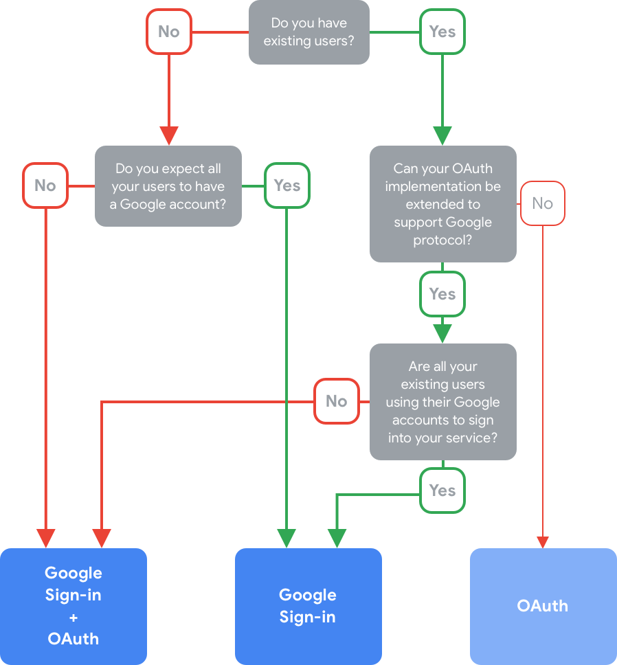 Kullanıcı ekransız bir cihaz kullanıyorsa Google, oturum açma işlemini tamamlamak için kullanıcıyı sesten ekrana aktarmayı gerektirdiğinden OAuth bağlantı türünün tek başına kullanılmasını önermez. Mevcut bir OAuth 2 sunucusu uygulamanız varsa ve jeton değişimi uç noktasını Google'ın kimlik jetonundan otomatik bağlantı ve hesap oluşturma protokollerini destekleyecek şekilde genişletemiyorsanız bu akışı kullanabilirsiniz. Daha fazla bilgi için OAuth kavram rehberini inceleyin.