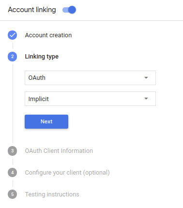 लिंक करने का टाइप में, OAuth और इंप्लिसिट चुनें.