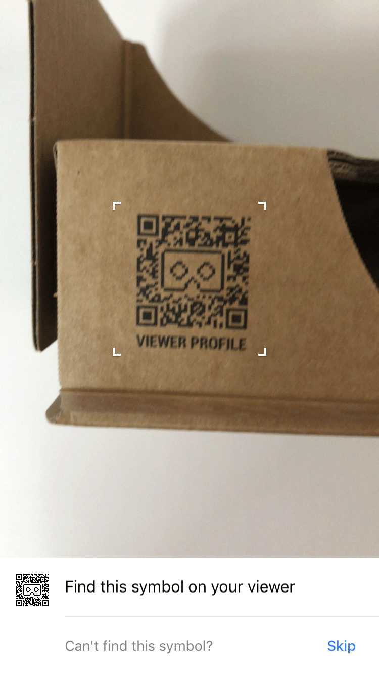 - Scan the QR code of a Cardboard viewer to save its parameters