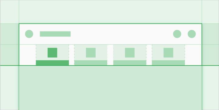 Menjelaskan model navigasi tingkat atas utama berdasarkan tab dan kontrol aplikasi untuk penelusuran dan setelan