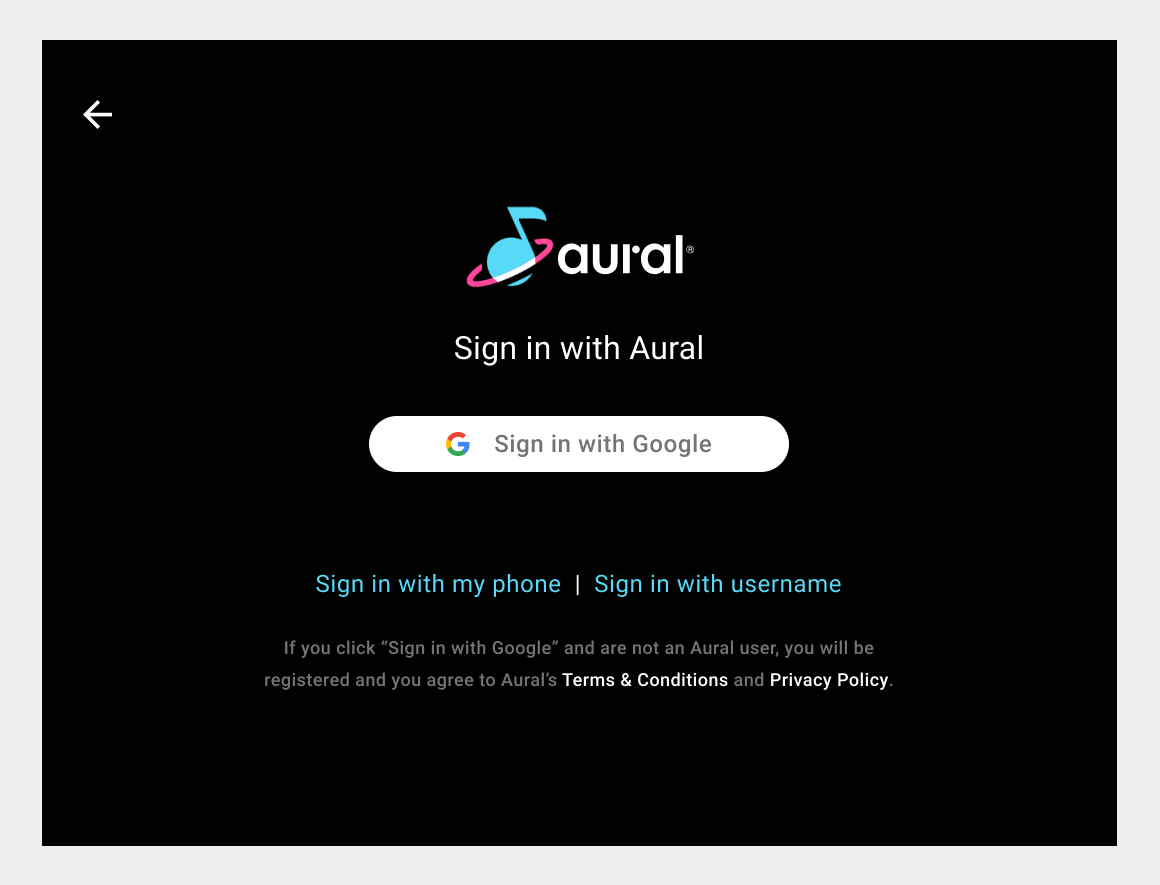 לפני: בדף הנחיתה מוצג הלוגו של אפליקציית מוזיקה בדיונית בשם Aural