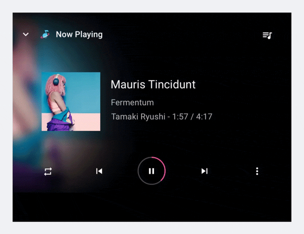حداقل، صف یک عنوان برای هر آیتم در صف نمایش می دهد. توسعه دهندگان برنامه همچنین می توانند برای هر کدام یک تصویر کوچک ارائه دهند. علاوه بر این، آنها می توانند نمادی را برای نشان دادن آیتم در حال پخش ارائه دهند که می تواند با نشان دادن زمان سپری شده برای آن آیتم نیز نشان داده شود. با این حال، خودروسازان می توانند انتخاب کنند که آیا هر یک از این موارد را نشان دهند یا پنهان کنند: تصویر کوچک، نماد، یا زمان سپری شده.
