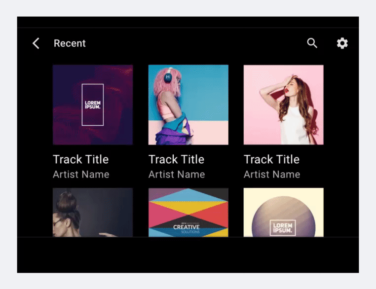 Tampilan petak menampilkan dua kolom gambar atau lebih yang merepresentasikan item konten, dengan teks singkat di bawah setiap gambar. Tampilan ini paling baik jika pengguna terutama mengandalkan gambar untuk membuat pilihan mereka.