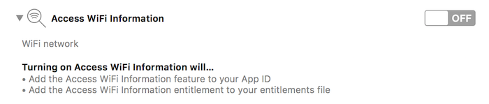 בנוסף, פרופיל ההקצאה צריך לתמוך ביכולת Access WiFi Information. אפשר להוסיף אותו ב-Apple Developer Portal.
