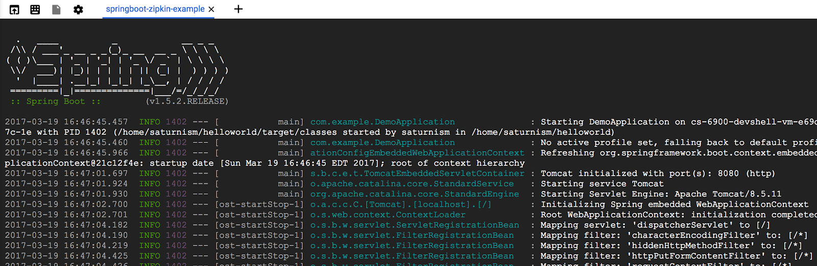 $ cd $HOME/helloworld $ ./mvnw -DskipTests spring-boot:run