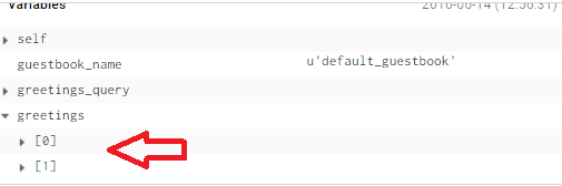 For example, if you expand on greetings variable, you will see that it has the records corresponding to the number of guestbook entries that you've created.