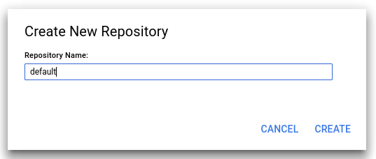 Fai clic su "CREA REPOSITORY" per creare un nuovo repository di codice denominato "default" :