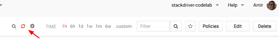 Take the time to familiarize yourself with navigating and using dashboards and charts. Use the mouse to hover over chart lines and see what happens. Change time duration for charts (controls are at the upper right corner). You can always go back to the "homepage" view by clicking the Stackdriver logo at the upper left corner of the console.