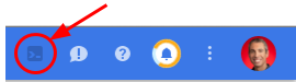 คุณจะทำงานส่วนใหญ่จาก Google Cloud Shell ซึ่ง เป็นสภาพแวดล้อมบรรทัดคำสั่งที่ทำงานในระบบคลาวด์ เครื่องเสมือนที่ใช้ Debian นี้มาพร้อมเครื่องมือพัฒนาทั้งหมดที่คุณต้องการ และมีไดเรกทอรีหน้าแรกขนาด 5 GB ที่คงอยู่ถาวร เปิด Google Cloud Shell โดยคลิกไอคอนที่ด้านขวาบนของหน้าจอ