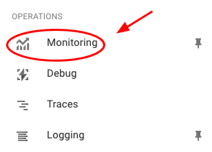 โดยค่าเริ่มต้น Google Stackdriver ปัจจุบันอยู่ในเวอร์ชันเบต้าและไม่ได้เปิดใช้สำหรับโปรเจ็กต์ใหม่ หากต้องการเปิดใช้ ให้ไปที่แถบนำทางด้านซ้ายแล้วคลิก "การตรวจสอบ" (อาจต้องเลื่อนลงเพื่อค้นหา)