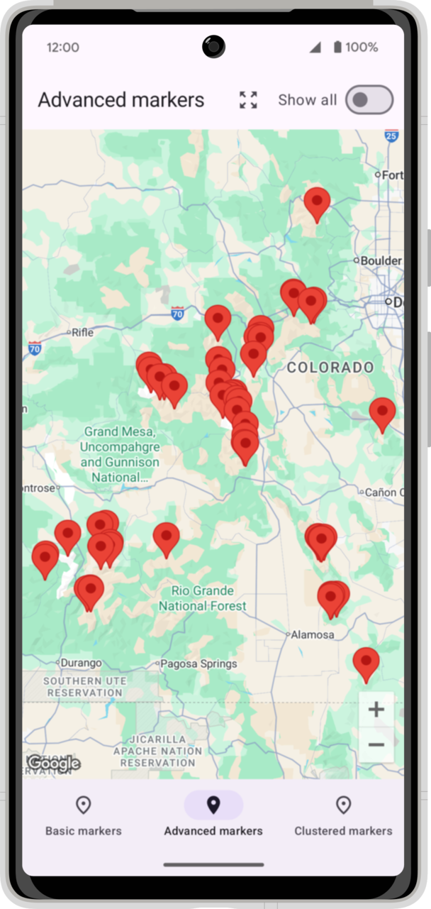 Cet atelier de programmation vous explique comment intégrer le SDK Maps pour Android à votre application et utiliser ses principales fonctionnalités. Pour cela, nous allons créer une application affichant une carte des montagnes du Colorado, aux États-Unis, à l'aide de différents types de repères. Vous apprendrez également à dessiner d'autres formes sur la carte.