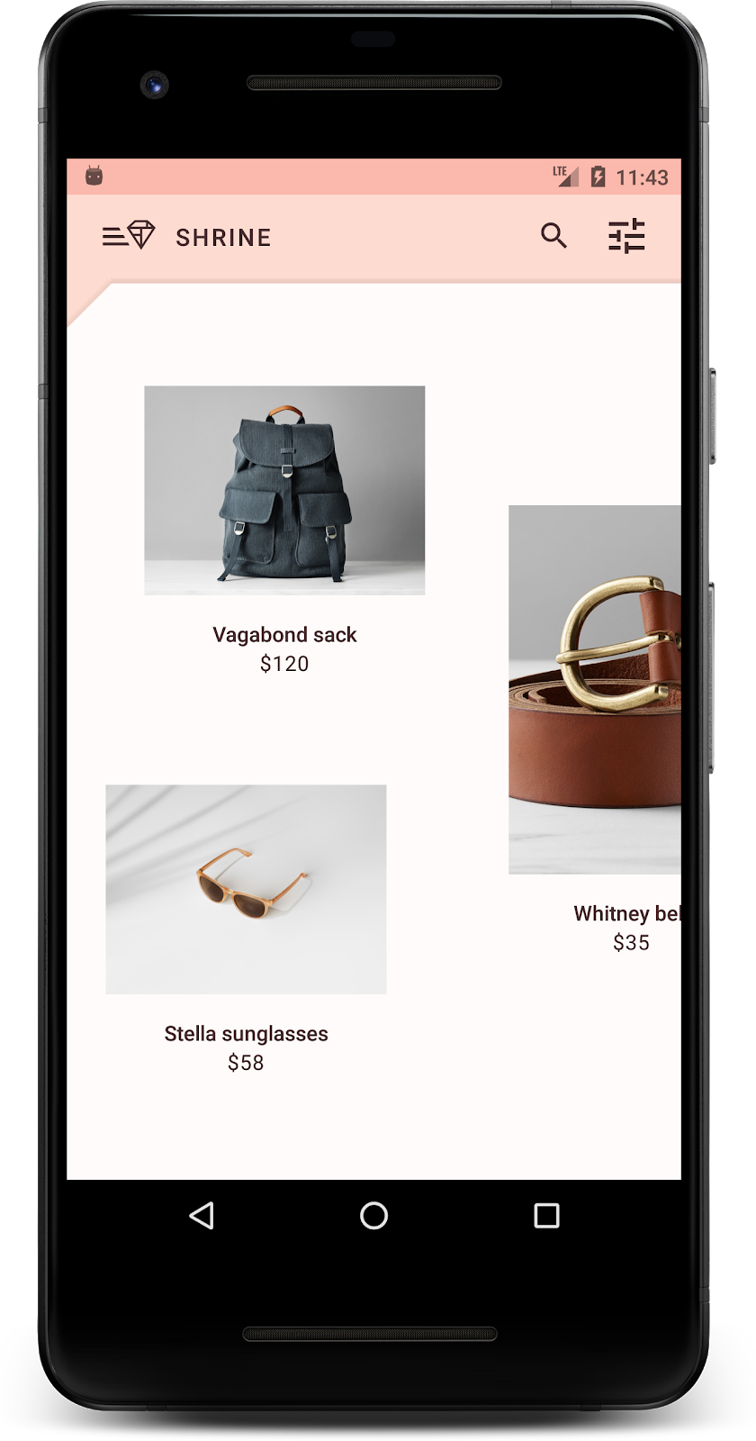 This codelab is the first of 4 codelabs that will guide you through building an app called Shrine, an e-commerce Android app that sells clothing and home goods. It will demonstrate how you can customize components to reflect any brand or style using MDC-Android.