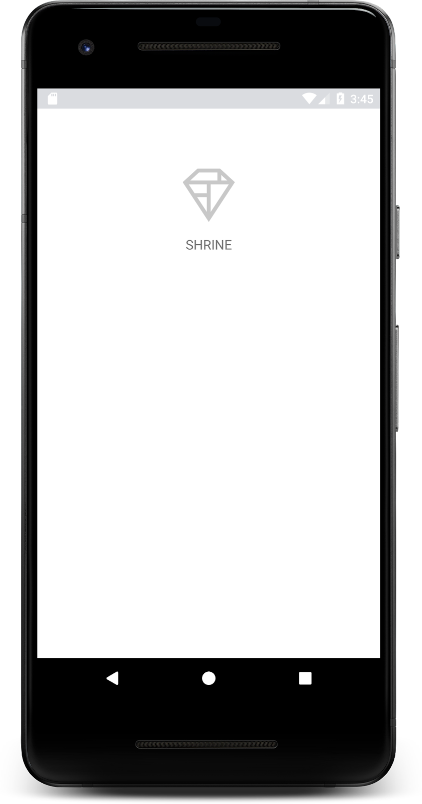 Success! The starter code for Shrine's login page should be running in your emulator. You should see the name "Shrine" and the Shrine logo just below it.