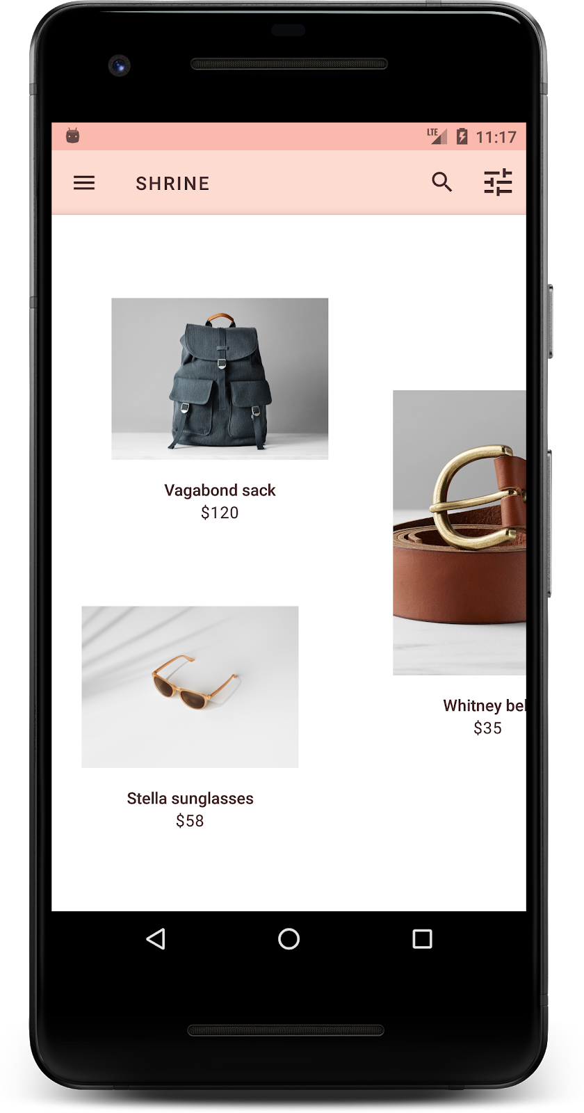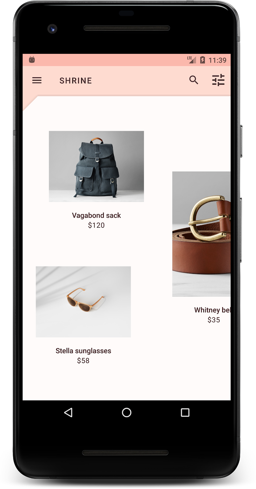 In this codelab, you'll add a backdrop to Shrine. It will filter the products shown in the asymmetrical grid by category. You'll be using: