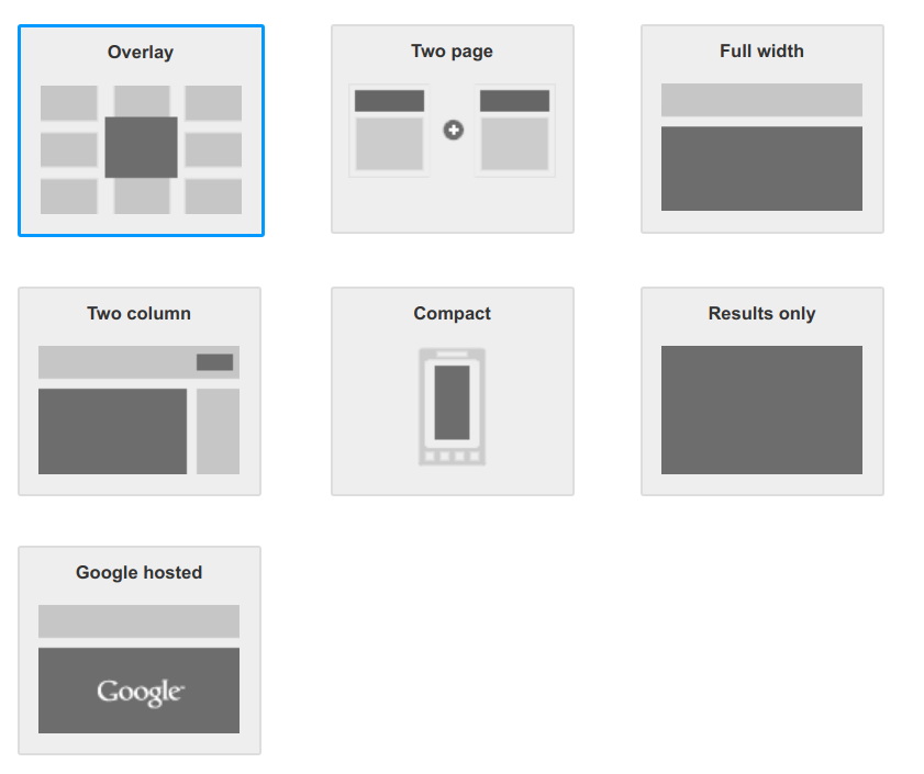 Anda juga dapat memanfaatkan Programmable Search Element Control API untuk menyesuaikan UI penelusuran lebih lanjut. Banyak penyesuaian didukung melalui atribut HTML. Misalnya, Anda dapat memilih di antara enam tata letak untuk halaman hasil, atau menetapkan jumlah hasil penelusuran yang akan ditampilkan.