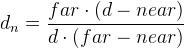 Let d be the depth of a pixel, and near and far the minimum and maximum depth values considered. The depth value is first normalized to the [0, 1] range as
