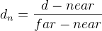 فرض کنید d عمق یک پیکسل و نزدیک و دور حداقل و حداکثر عمق در نظر گرفته شود. مقدار عمق ابتدا در محدوده [0، 1] به عنوان نرمال می شود