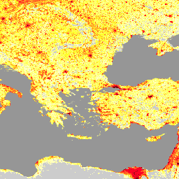 このラスター データセットは、建造物が建てられている地表の分布を示しています。値は 100 m グリッドセルあたりの平方メートルで表されます。このデータセットでは、a)建てられた面積の合計と、b)主に非住宅(NRES)用途のグリッドセルに割り当てられた建てられた面積を測定しています。データが空間的および時間的に補間されている built built-environment builtup copernicus ghsl jrc -