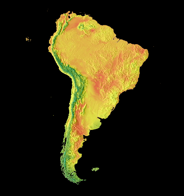 // Define a hillshade layer from SRTM digital elevation model. var hillshade = ee.Terrain.hillshade(ee.Image('USGS/SRTMGL1_003') // Exaggerate the elevation to increase contrast in hillshade. .multiply(100)) // Clip the DEM by South American boundary to clean boundary between // land and ocean. .clipToCollection(southAmCol); // Map a blend operation over the temperature collection to overlay a partially // opaque temperature layer on the hillshade layer. var finalVisCol = tempColVis.map(function(img) { return hillshade .blend(img.clipToCollection(southAmCol).visualize({opacity: 0.6})); }); // Define animation arguments. var videoArgs = { dimensions: 768, region: southAmAoi, framesPerSecond: 7, crs: 'EPSG:3857' }; // Display the animation. print(ui.Thumbnail(finalVisCol, videoArgs));