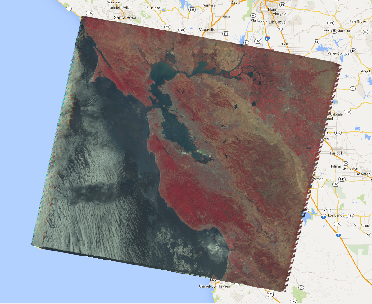 // Load an image collection, filtered so it's not too much data. var collection = ee.ImageCollection('LANDSAT/LT05/C02/T1') .filterDate('2008-01-01', '2008-12-31') .filter(ee.Filter.eq('WRS_PATH', 44)) .filter(ee.Filter.eq('WRS_ROW', 34)); // Compute the median in each band, each pixel. // Band names are B1_median, B2_median, etc. var median = collection.reduce(ee.Reducer.median()); // The output is an Image. Add it to the map. var vis_param = {bands: ['B4_median', 'B3_median', 'B2_median'], gamma: 1.6}; Map.setCenter(-122.3355, 37.7924, 9); Map.addLayer(median, vis_param);