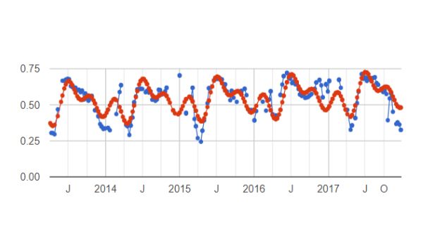 Experiment with a collection of monthly Landsat gap-filled data from the HISTARFM data fusion system.