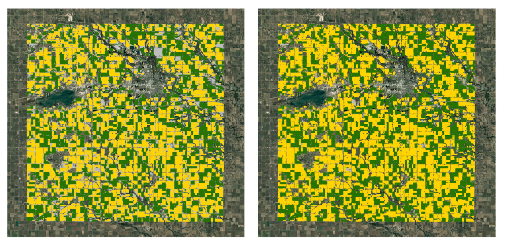 Şekil: Mısır ve soya fasulyesi mahsulleri içeren algılanan mahsul haritası