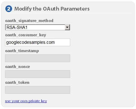 oauth_consumer_key(دامنه ثبت شده شما) و کلید خصوصی خود را آزمایش کنید. - کشف کنید که چه سرویسهای فید Google Data در دسترس