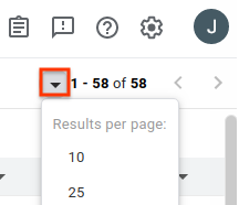 每页的结果数由搜索结果页右上角的下拉菜单按钮控制。该按钮位于搜索结果数字摘要的左侧。