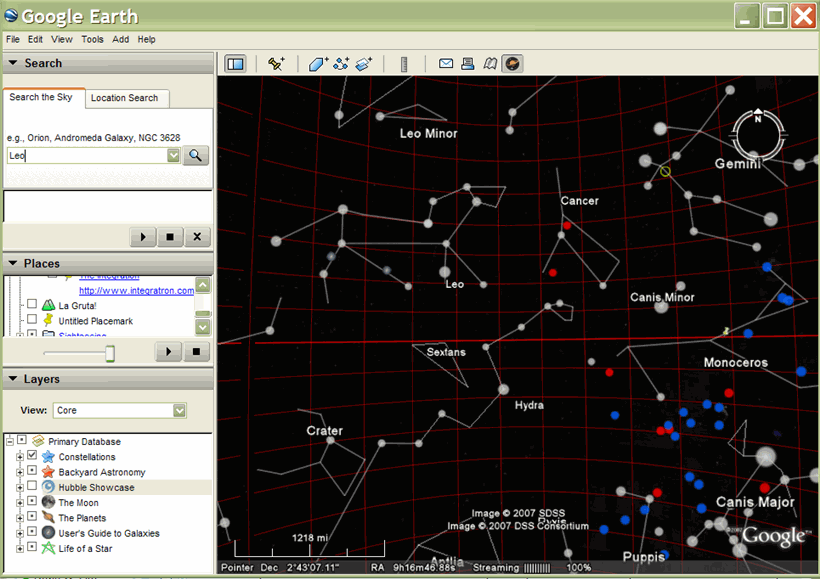 องค์ประกอบต่อไปนี้รองรับใน Google Earth 4.2, โหมด Sky
