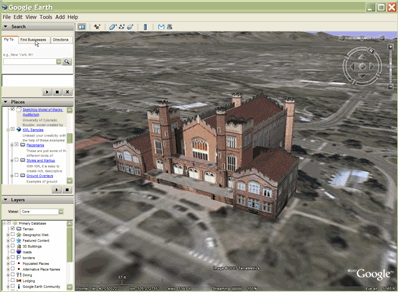 এই মডেলটি দেখতে, ফাইলটি লোড করুন MackyBldg.kmz , যা একটি আর্কাইভ যাতে সমস্ত প্রয়োজনীয় টেক্সচার এবং ওভারলে ফাইলের পাশাপাশি মডেলটি ধারণকারী এই doc.kml ফাইলটি রয়েছে: