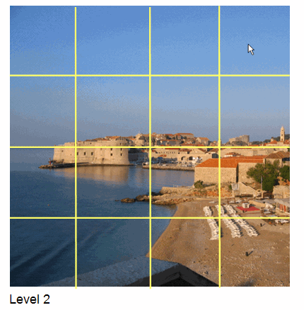 6. টাইলস মধ্যে উপবিভক্ত. এই স্তরের চিত্রটি 4 * 4 টাইলগুলির (স্তর 2) একটি গ্রিড নিয়ে গঠিত।
