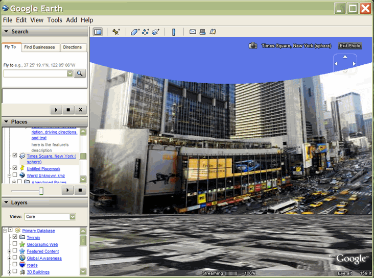 KML এর আগের রিলিজগুলি আপনাকে Google Earth-এ প্লেসমার্কের সাথে সংযুক্ত বেলুনের বর্ণনায় ছোট ফটোগ্রাফ অন্তর্ভুক্ত করার অনুমতি দেয়। সম্পূর্ণ স্তর, যেমন প্যানোরামিও, ব্যবহারকারীর অবদানকৃত জিওলোকেটেড ফটো নিয়ে গঠিত। এই ফটোগুলি দেখতে, ব্যবহারকারীকে অবশ্যই প্লেসমার্ক আইকনে ক্লিক করতে হবে (অথবা তালিকা প্যানেলে নামটি ক্লিক করুন) ফটো ধারণকারী বেলুনটি খুলতে।