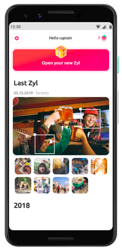 Ogni giorno, Zyl offre agli utenti la possibilità di riscoprire un ricordo speciale e condividerlo con i propri cari. L'analisi delle immagini consente di identificare foto, video e GIF significativi dalle raccolte degli utenti e di mostrarli uno alla volta.