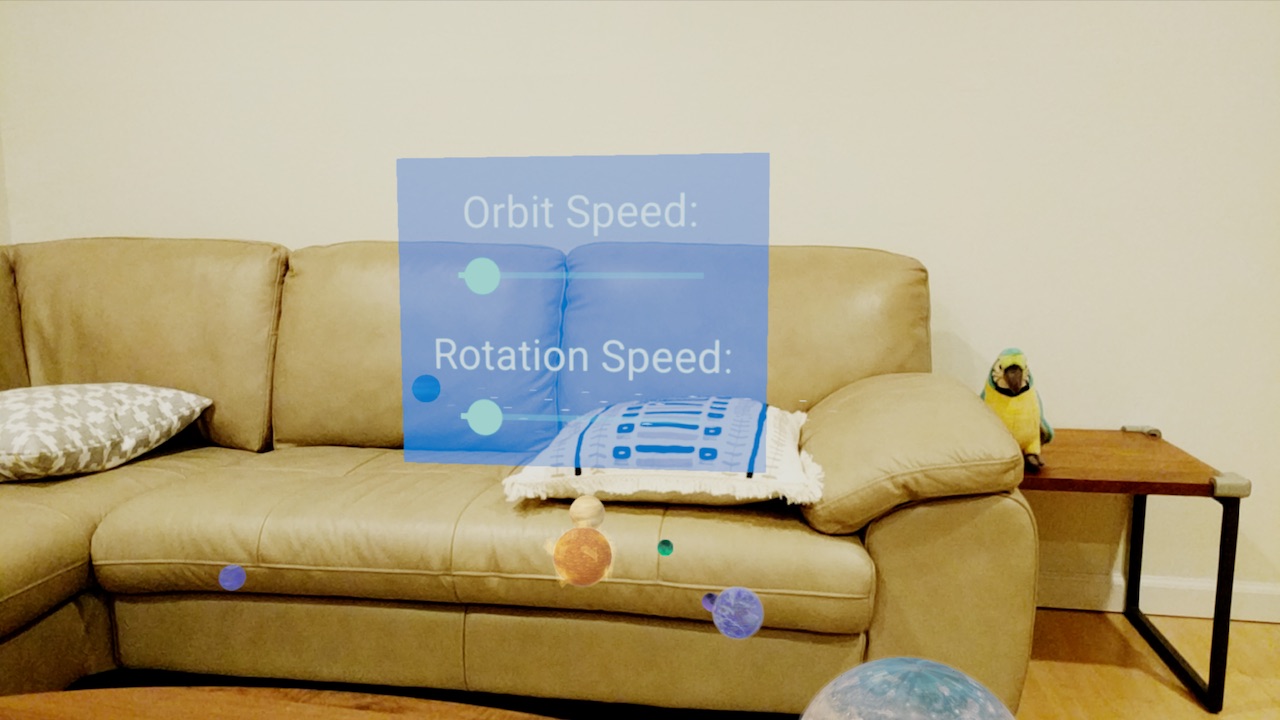 Du kannst ein ViewRenderable aus Standard-Android-Widgets erstellen. Diese werden als flache Karten im Ambiente dargestellt.