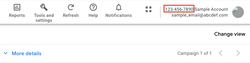 یکی از راه‌های دریافت «login-customer-id» از طریق رابط کاربری Search Ads 360 است. 'login-customer-id' برای حساب مشتری انتخاب شده فعلی در گوشه سمت راست بالای صفحه نمایش داده می شود.