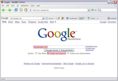 Um herauszufinden, wie viele eurer Seiten als zu einer bestimmten Sprache zugehörig erkannt wurden, solltet ihr eine sprachspezifische Site-Suche durchführen. Wenn ihr beispielsweise eine Suche nach google.com mit dem Operator site: durchführt, so könnt ihr unterhalb der Suchbox die Option festlegen, so dass euch nur Resulte angezeigt werden, die auf Deutsch vorliegen.