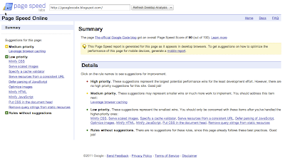 Prueba Page Speed Online [ inglés ]. Tenemos ganas de escuchar tus comentarios en nuestra lista de correo [ inglés ], además de saber cómo lo utilizas para optimizar tu sitio web.