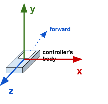 Relative to the controller's pose when tracking starts, the X axis points to the right, and the Z axis points back.