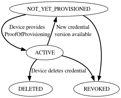 Wenn ein Gerät zum ersten Mal mit einem Aussteller kommuniziert, erhält es eine eindeutige Nonce, um Replay-Angriffe zu verhindern und die Datenaktualität zu gewährleisten. Die Nonce wird vom Identitätsschlüssel des Geräts signiert und in das Zertifikat eingebettet, das den Identitätsschlüssel enthält. Zukünftig kann das Zertifikat verwendet werden, um das Gerät beim Aussteller zu verifizieren.