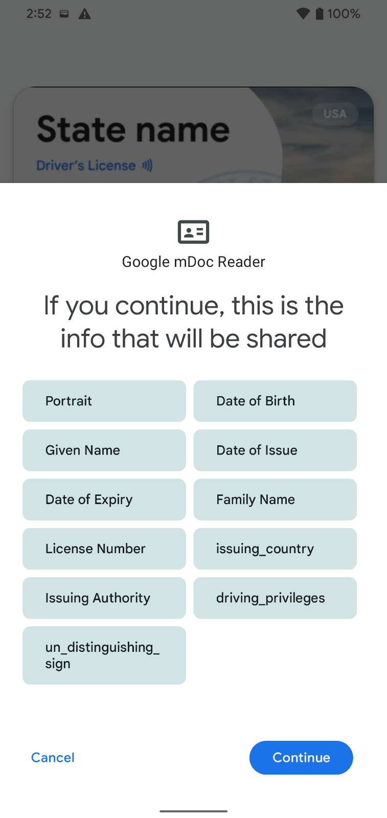 • Once you unlock, a consent screen will appear, showing you the information the terminal is requesting.